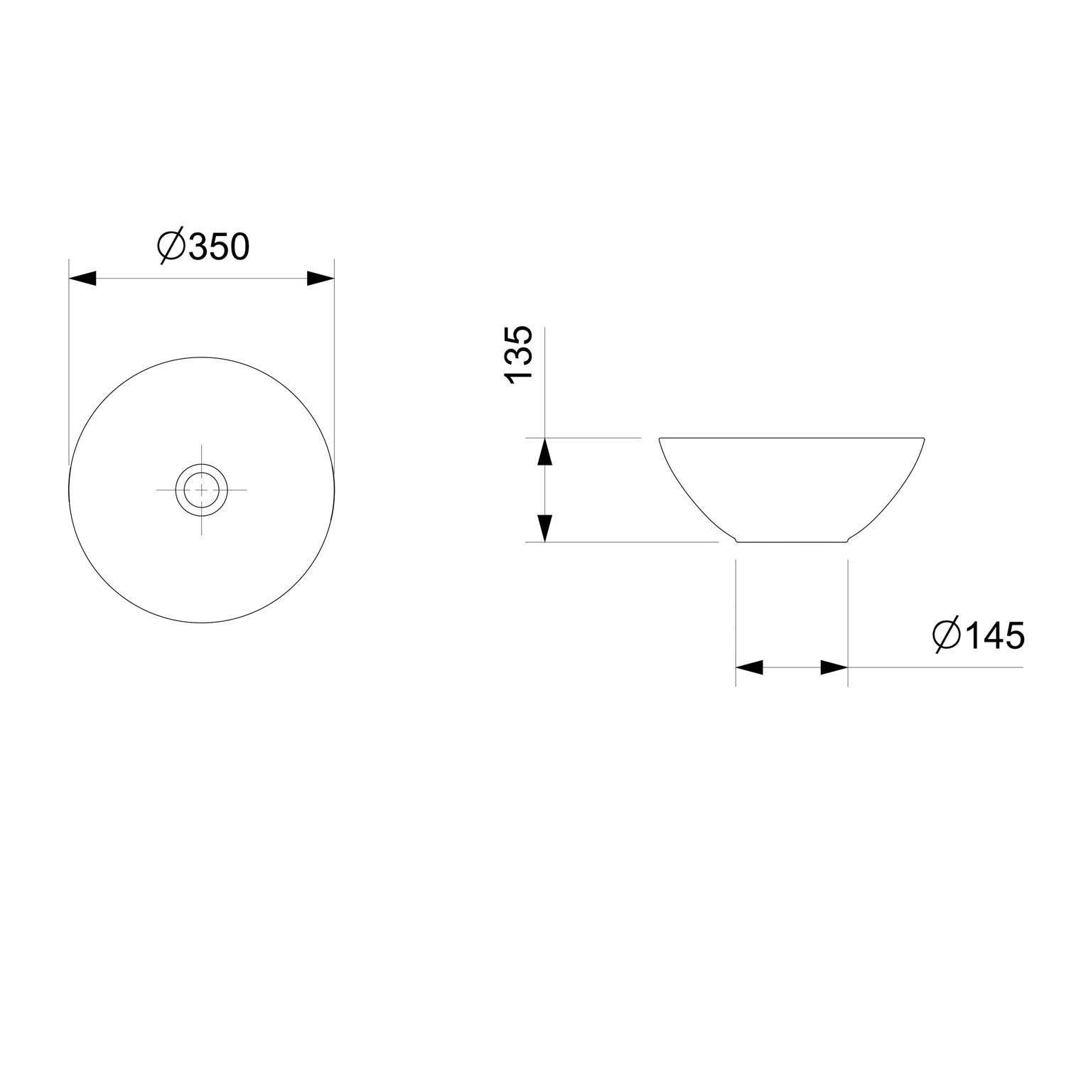 Cuba de apoio redonda com mesa da Celite Importante: As dimensões dos produtos em louça sanitária têm uma tolerância de aproximadamente 10 mm.