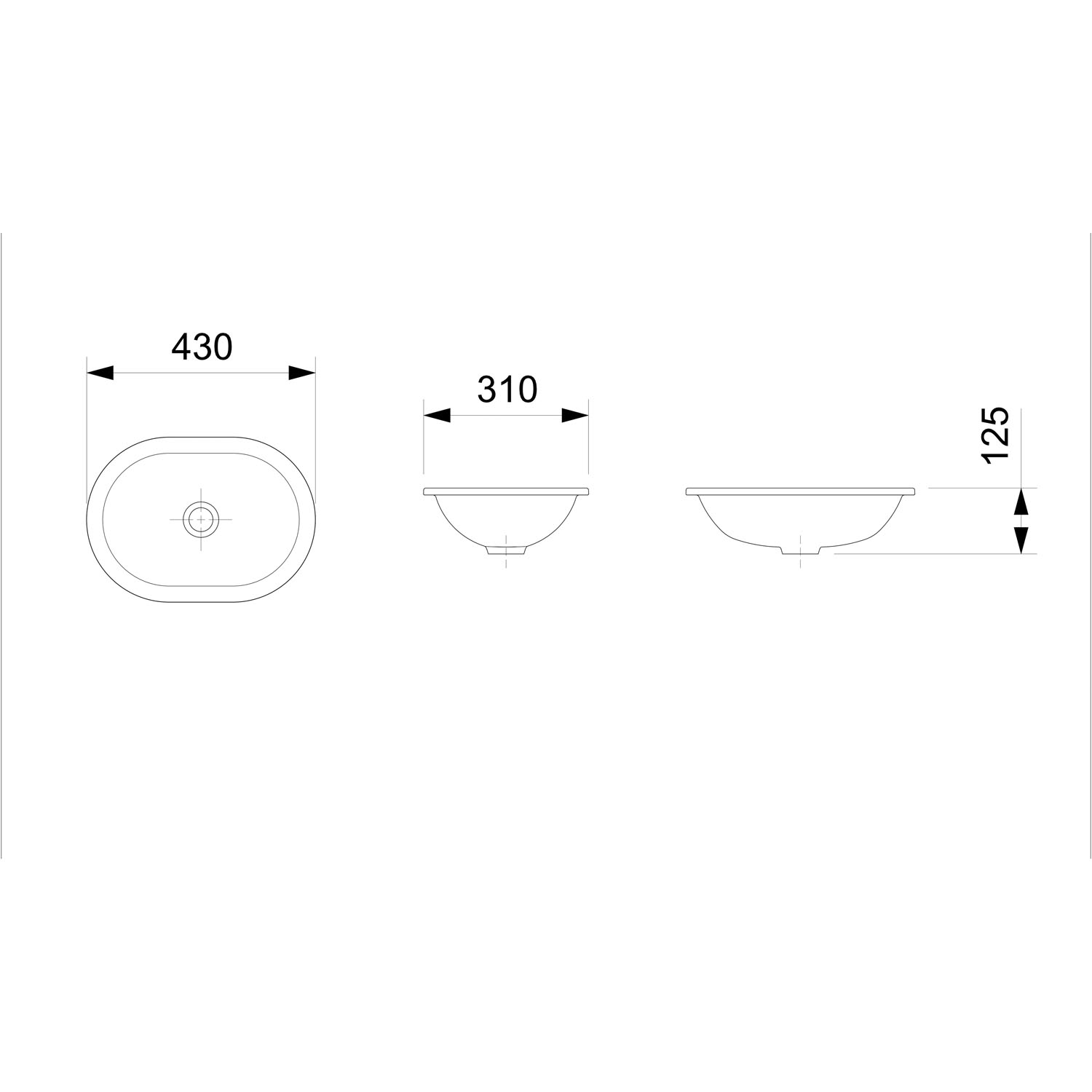 Cuba de sobrepor ou de embutir oval da Celite Importante: As dimensões dos produtos em louça sanitária têm uma tolerância de aproximadamente 10 mm.