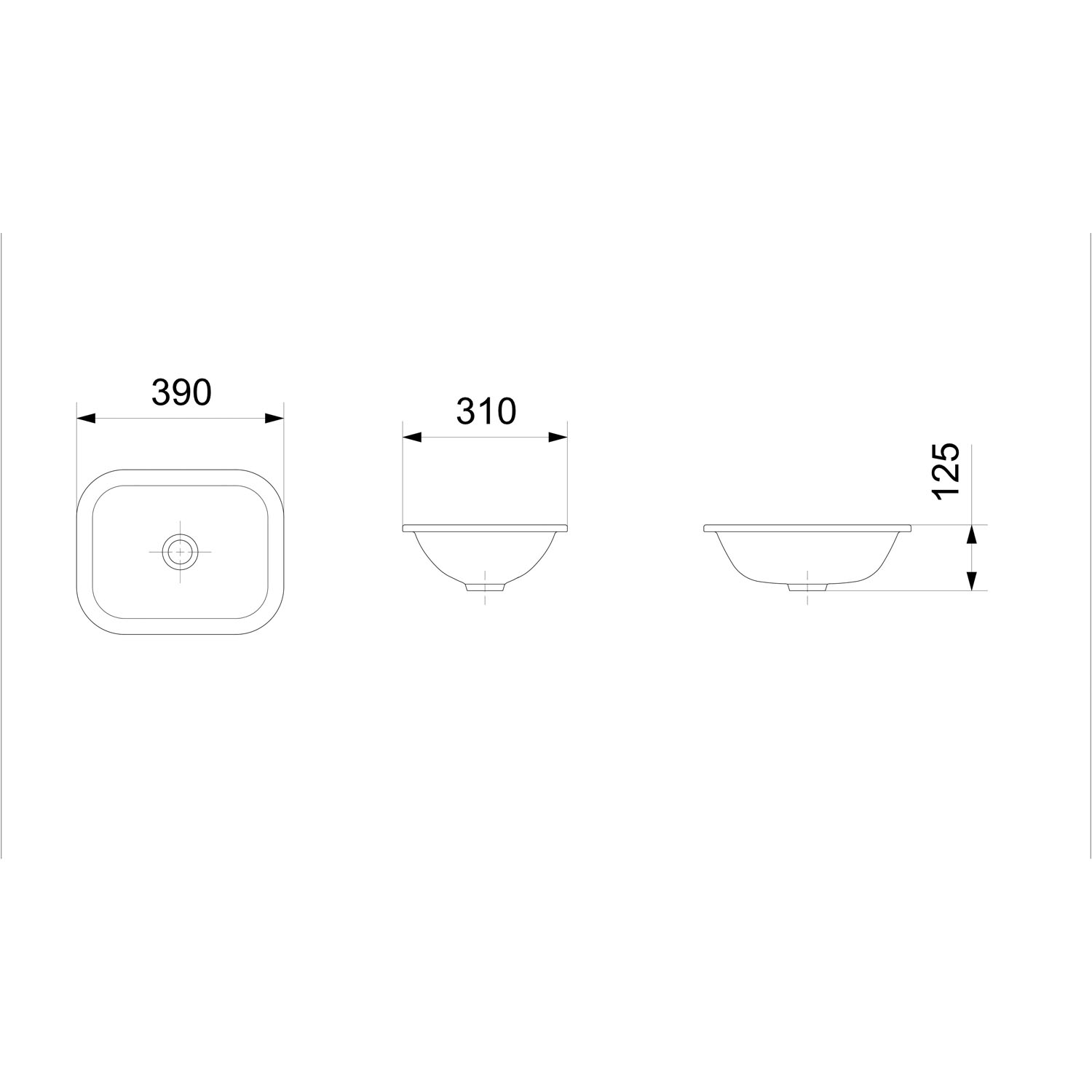 Cuba de sobrepor ou embutir retangular da Celite Importante: As dimensões dos produtos em louça sanitária têm uma tolerância de aproximadamente 10 mm.