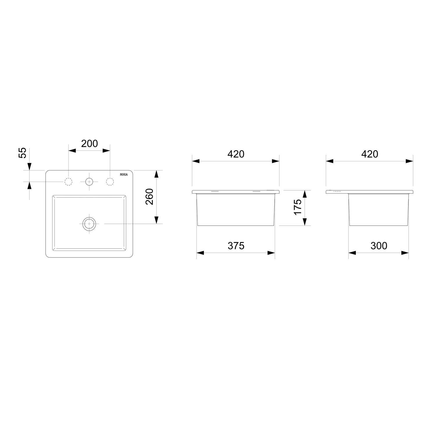 Largura da cuba (mm)