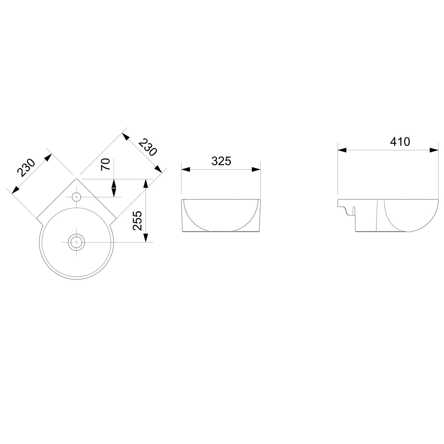 Lavatório Suspenso de Canto M com furo central apontado
